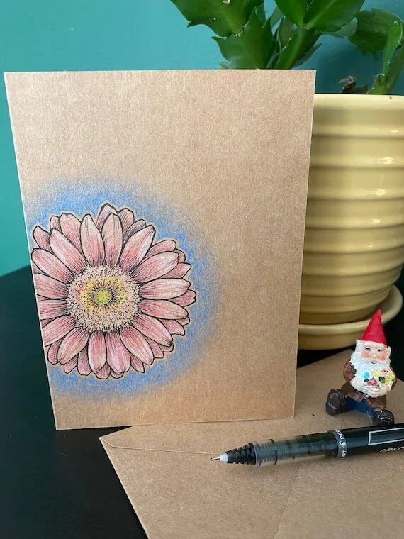 Etsy Shop › Pink Flower - Greeting Card Image 1 of 2 Image 2 of 2 Pink Flower - Greeting Card $4.00 Hand Drawn Greeting Card - Pink Flower, blue backgroundLeft blank for your own personal message.Drawing on brown card stock. Matching envelope included.Measures 4” x 5.5” Add To Cart Added! Hand Drawn Greeting Card - Pink Flower, blue backgroundLeft blank for your own personal message.Drawing on brown card stock. Matching envelope included.Measures 4” x 5.5”